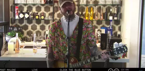 ソーシャル・ディスタンシングなバンドセットでライブに臨むマローン