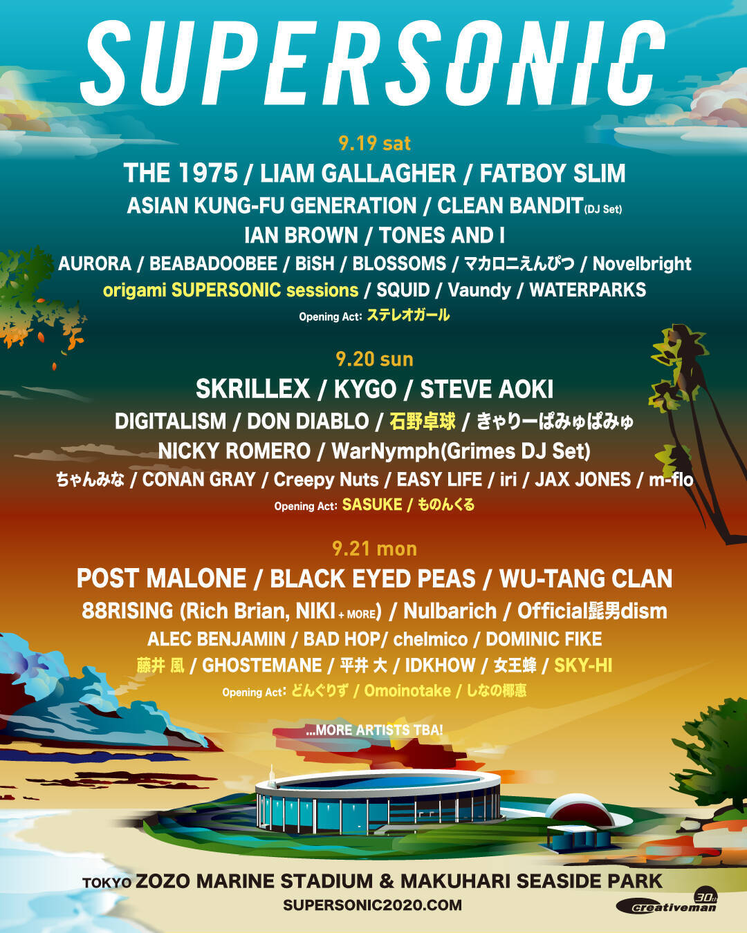 また、スーパーソニック各日の幕開けを飾るオープニングアクト第1弾として、ステレオガール、SASUKE、ものんくる、どんぐりず、Omoinotake、しなの椰惠といった、未来の音楽シーンを支えるであろう才気溢れるアーティストが決定している。