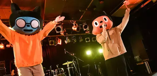 定刻を少し過ぎた頃、ぼっちぼろまるがビジネスフレンドと称するヲタきちと一緒にステージに登場。挨拶を済ませると、中華風のリフが印象的なアップテンポの曲「タンタカタンタンタンタンメン」でライブはスタート。ゆるキャラのような出で立ちで踊りを披露しながら、会場の手も大きく振らせて盛り上げる。続く、等身大でシュールな歌詞の「ぼくも傘がない」ではテンションの高いギターリフとぼろまるのどこか気の抜けたビジュアルと愉快なダンスのギャップが魅力的に映えた。