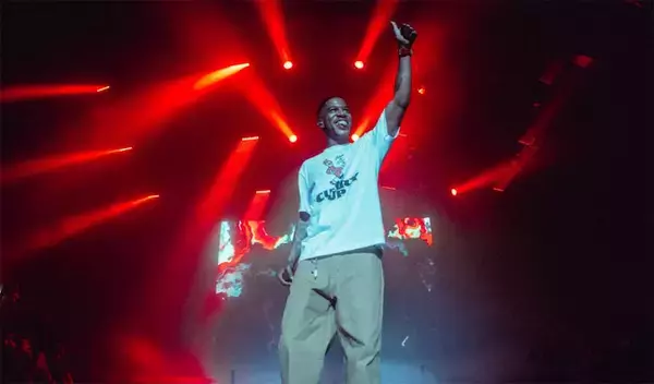 というわけで、会場は開演前から大歓迎ムード。オープニング・アクトを務めたJP THE WAVYのパフォーマンスの時点で会場の熱気は十分に感じられるほどだったが、キッド・カディ本人がステージに登場すると、その熱狂は一気にピークへと到達。一方で、背景のスクリーンにはサイケデリックでカラフルな映像が映し出され、それはやがて自然豊かな美しい景色へと切り替わる。あくまでリラックスしたムードで「今、僕はどこに?」と尋ねるカディに、ナレーターは「自分の心の中だ」と答える。そう、今回のツアーのコンセプトは、観客と共にカディの内面を探索していくことにある。期待ではちきれんばかりの会場に鳴り響くのは、まさかの2009年のデビュー・ミックステープ『A Kid Named Cudi』の冒頭を飾る「Down & Out」。強靭なビートと共に観客の熱量もさらに上昇し、誰もが全身でその興奮を表現していく。その勢いのまま「Tequila Shots」、「She Knows This」と『Man on the Moon III: The Chosen』の収録楽曲が披露され、ド派手なレーザーや噴き上がるスモークが熱狂を更に増幅させる。10年以上の間隔がある楽曲にも関わらず全く違和感を感じさせないのは、それだけ彼の楽曲が普遍性を持っているということなのだろう。