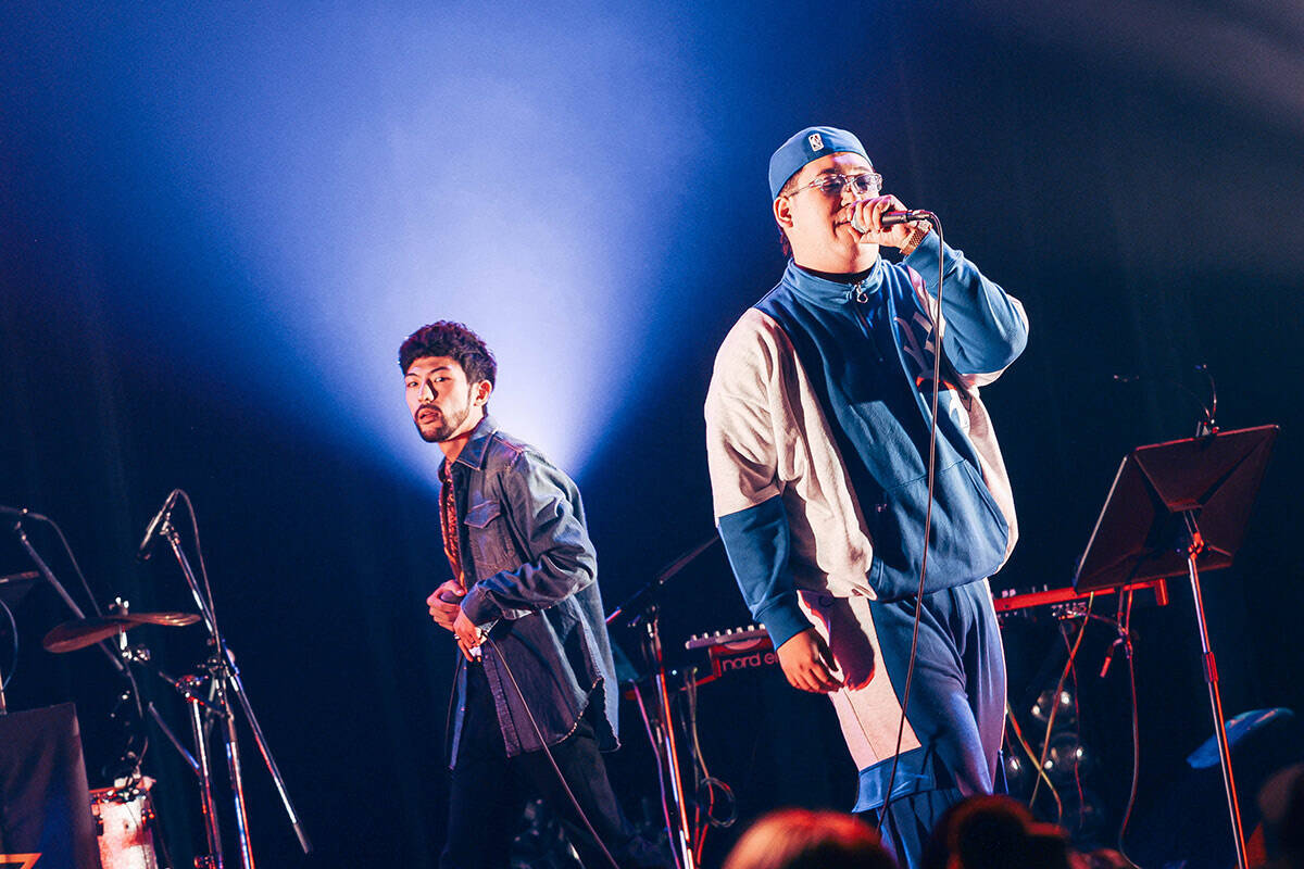 オープニングアクトはEASTAとKVGGLVによるユニット・SUMMER SNOWMAN。「MAGIC HOUR遊んでいこうぜ! よろしくお願いします!」と一声放ち、「サマスノEverywhere」を軽快にかっ飛ばす。続けてEASTAが「今日は長いので楽しんでいってください!どんな楽しみ方するかといったら、汗かいて楽しんで!」と「アセアセ」をドロップ。キャッチーなライムにオーディエンスはのっけから手を挙げて体を揺らす。曲の後半はラップの勢いが増し、「飛び跳ねろ!」の合図でジャンプ。チルな雰囲気から始まった「黄昏時グッドスメル」では、フロウをダイナミックに交互に繰り出して盛り上げる。