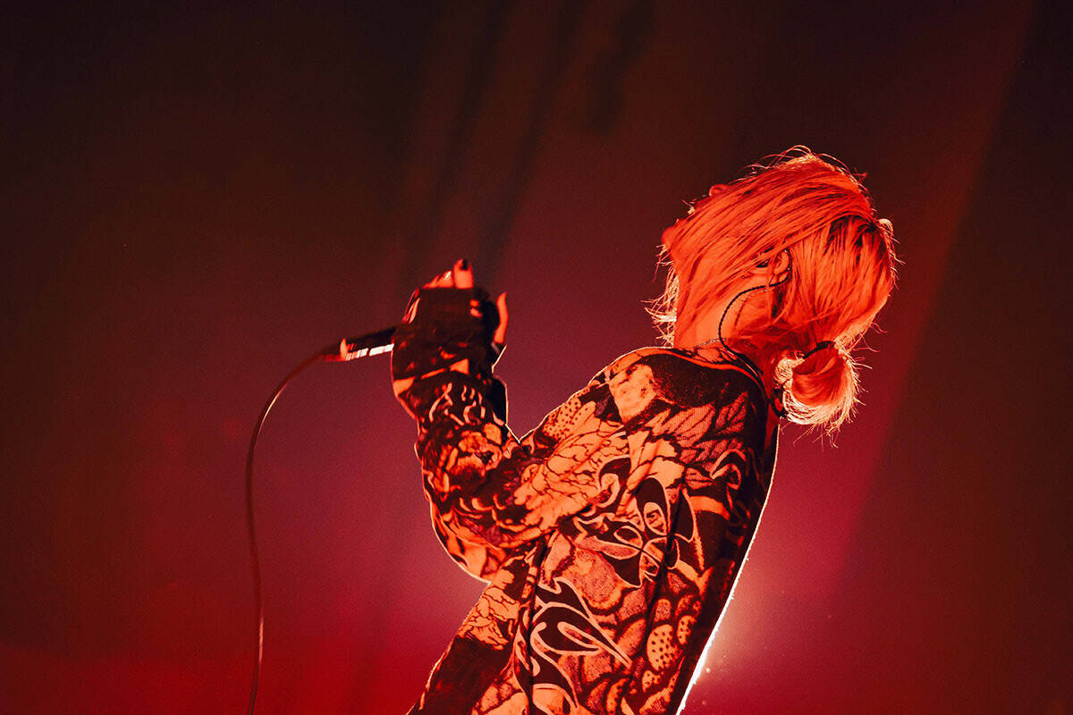 グルーヴィな波を作り出して一体感を見せたのは(sic)boy。DJがトラックを流し「Akuma Emoji」からライブをスタートすると、フロアは手を挙げて大盛り上がり。ラウドな要素もありながらキャッチーな歌メロがノリやすく、いつの間にか独自の世界観に連れていかれるパワーがある。続く「living dead!!」では加速したビートと照明が呼応して激しさを増し、さらに「Ghost of You」、「落雷」、「未発表の新曲」とエッジーかつパワフルな楽曲を連投。ビジュアル系バンドを彷彿とさせるルックスと魂のこもったラップ、時折差し込まれるデスボイスはまさにヒップホップとメタル、そしてロックの融合だ。唯一無二のステージングで魅了し、会場を圧倒した。MCでは「東京から来ました(sic)boyといいます。楽しんでますか?」と挨拶し、「さっきの曲も新曲なんですけど、次の曲も今月出す新曲です」と「Afraid??」を披露。切なげなメロディが美しく会場を満たし、フロアはゆらゆらと身を任せていた。ヒップホップ色強めの「(stress)」では滑らかにフロウを紡ぎ出す。ホーン隊が入ったジャジーなサンプリングから流れるように繋がれた「Kill this」ではループするラインにグルーヴが生まれ、情緒を揺さぶった。