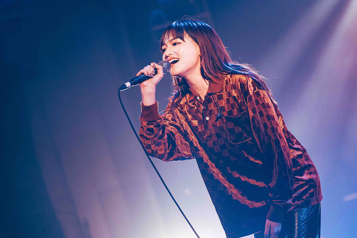 サポートメンバーに村岡夏彦(Key)、BENCH.(Ba)、堀正輝(Dr)、George(MP, Syn)を迎えた編成で登場したiri。「ナイトグルーヴ」のイントロが鳴り響くと大歓声が沸き起こった。少しスモーキーでハッキリとした歌声とグルーヴィなサウンドで会場をひとつにする。Georgeのシンセが高らかに響きわたる。ベースの低音から始まった「Sparkle」ではハンドマイクでクールな歌唱。フロアとしっかり目を合わせて力強く歌いかける様子は堪らなくカッコ良い。紫と赤の絡まるライトが楽曲のアーバンさを引き立てた「摩天楼」では、低い声のラップ調ボーカルとともにリズム隊の重たいビートが大迫力で迫り、会場を完全に掌握する。筆者は2階席で見ていたが、1階フロアの熱気が上まであがってきた。