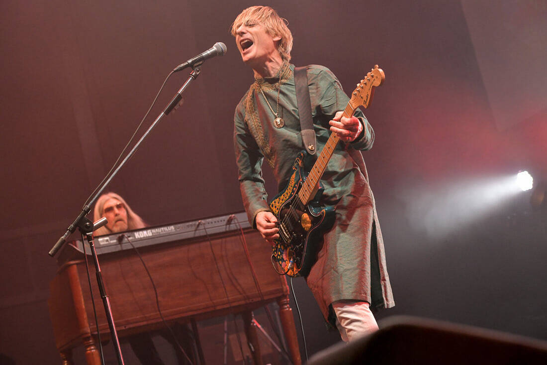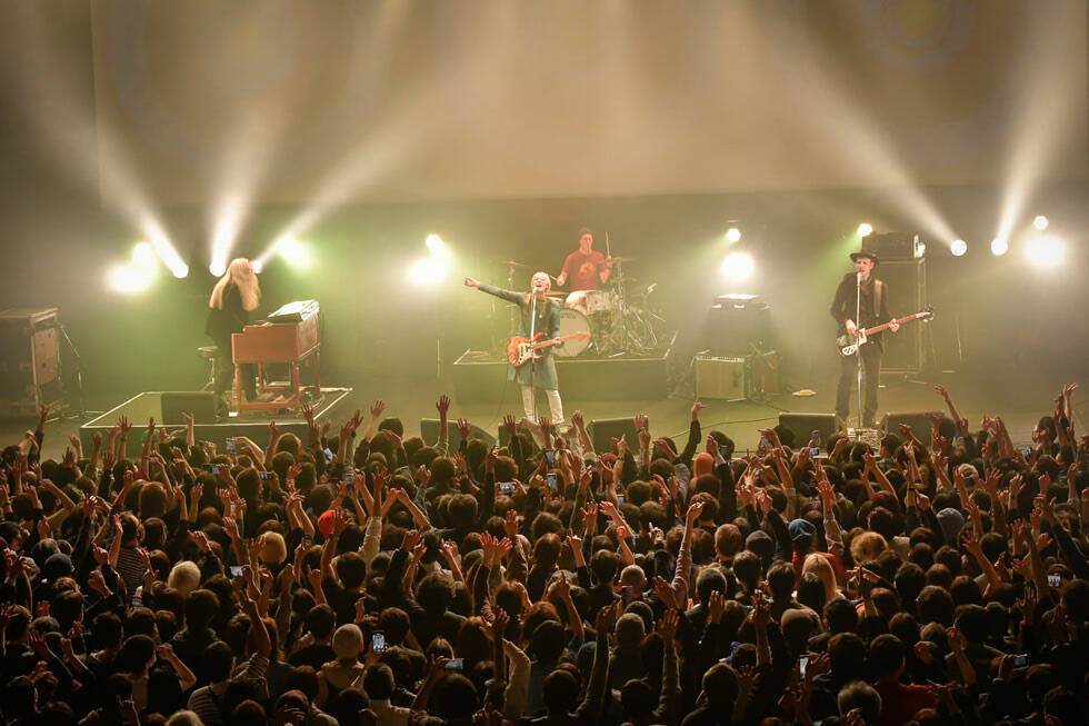ジャパン・ツアー初日の2月13日、東京・恵比寿ガーデンホールは、7年ぶりの単独公演とあって見事にソールドアウト。「Hey Dude」で爆発的にスタートし、「Hush」で締め括った怒涛の本編は、おなじみの人気曲はもちろん、最新作『1st Congregational Church Of Eternal Love (And Free Hugs)』収録曲の魅力も存分に開花していた。