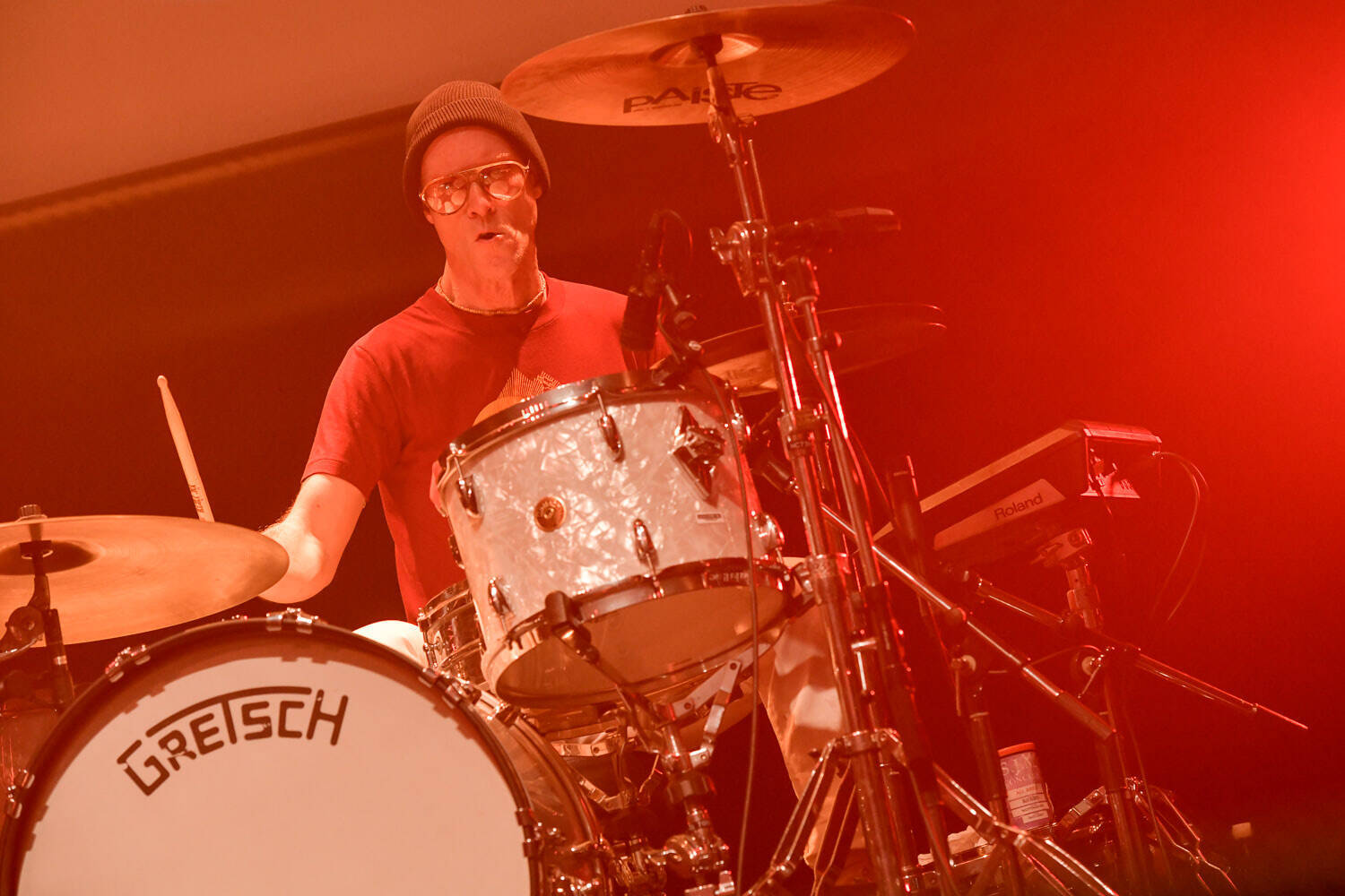ジェイが戻ってきたことで同窓会気分も少しあるのか、アンコールで「Govinda」のカップリング曲だった「Gokula」をプレイする際、クリスピアン・ミルズは初期にこの曲を書いたときのエピソードを語り始めた。「実はジョージ・ハリスンの曲(『Wonderwall Music』に収録された「Ski-ing」)からギターリフをまんまもらってきて作った曲なんだ」と屈託なく話す表情が、50歳になった今もロック少年丸出しで微笑ましい。演奏中、背景にジョージ・ハリスンの姿が投影される演出も絶妙だった。