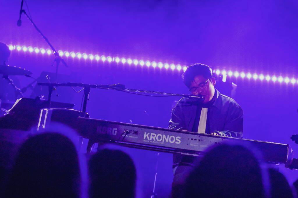 第1部の後半は「嘘で愛して(Tell Me a Lie)」、「愛の出番」と、ピアノをフィーチャーした優しくも力強いバラード曲を続けて演奏。途中ピアノのインプロビゼーションでは、先日逝去した坂本龍一の「Merry Christmas Mr. Lawrence」を思わせるフレーズを差し込むなど、彼への追悼の意を「音楽」で表現するさかい。一瞬空を仰ぎ、両手の人差し指を力強く天に向けていた姿が印象的だった。