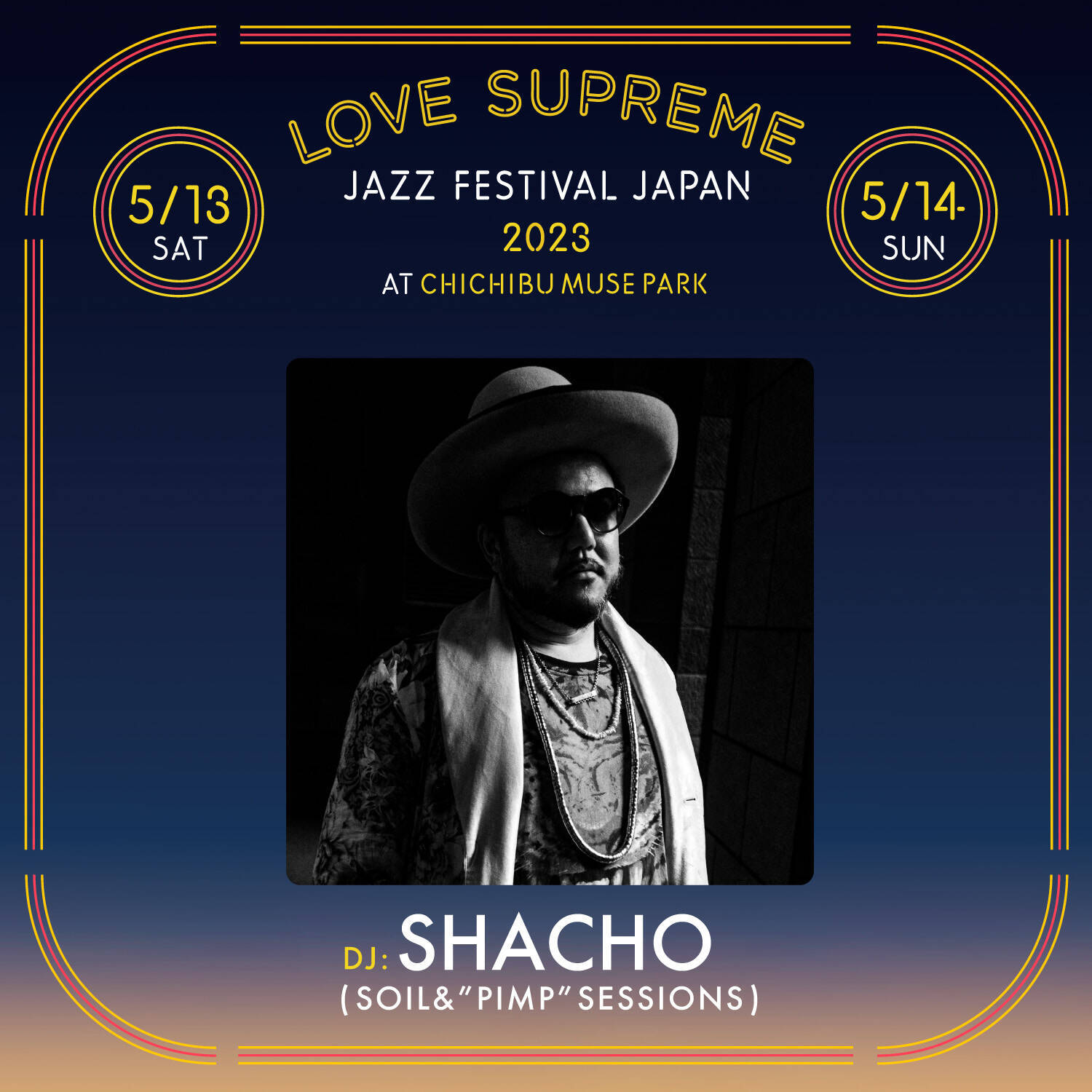 今回発表されたDJは全4組。レジデンシャルバンドとして2日間フル稼働予定のSOIL&”PIMP”SESSIONSからSHACHOの出演が決定。もう一つの顔であるDJは、96年より活動を開始。ジャズを軸にしながらジャンルの壁を超えた選曲で高揚感に包まれたフロアを演出している。