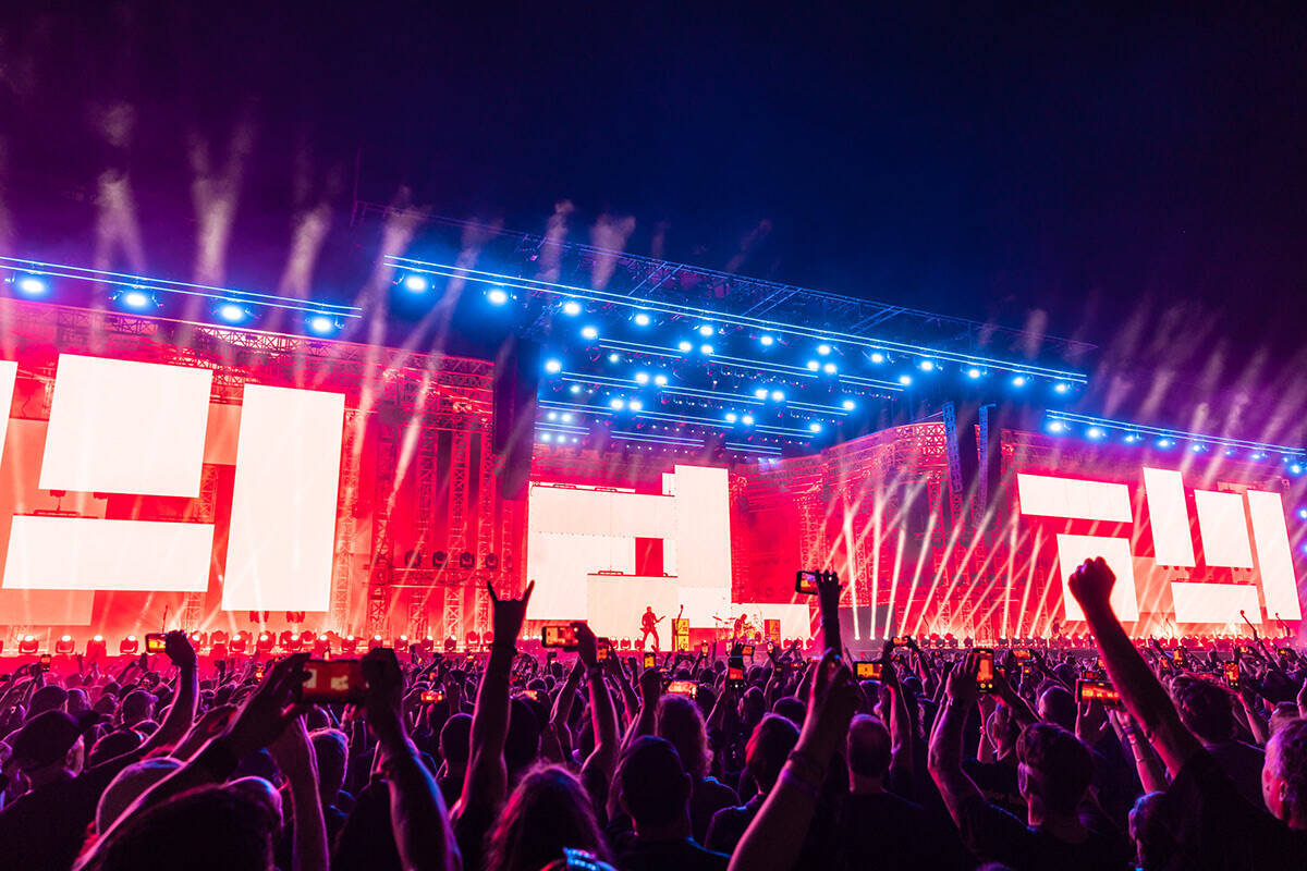 クロージングアクトはメタリカ。彼らのステージではステージ前のサークル上のピットエリアが特別に登場。聞いた話によれば会場内でスタッフから声がかかったラッキーな人々がそのサークル内へのパスをもらっていたらしい。そしてそのサークルを取り囲むようにピットエリアの真ん中ほどまで迫り出した半円形の花道が作られており、ジェイムズ・ヘットフィールド(Vo, Gt)を筆頭に、カーク・ハメット(Gt)やロバート・トゥルヒーヨ(Ba)がどんどんやってくる。まるで観客よりもメンバーの方が我々ファンに触れたいと思ってくれているかのようだった。「Fade to Black」を演奏する前にジェイムズが語ったメッセージを聞いた瞬間、彼らのアプローチに込められた思いを感じ取った気がした。