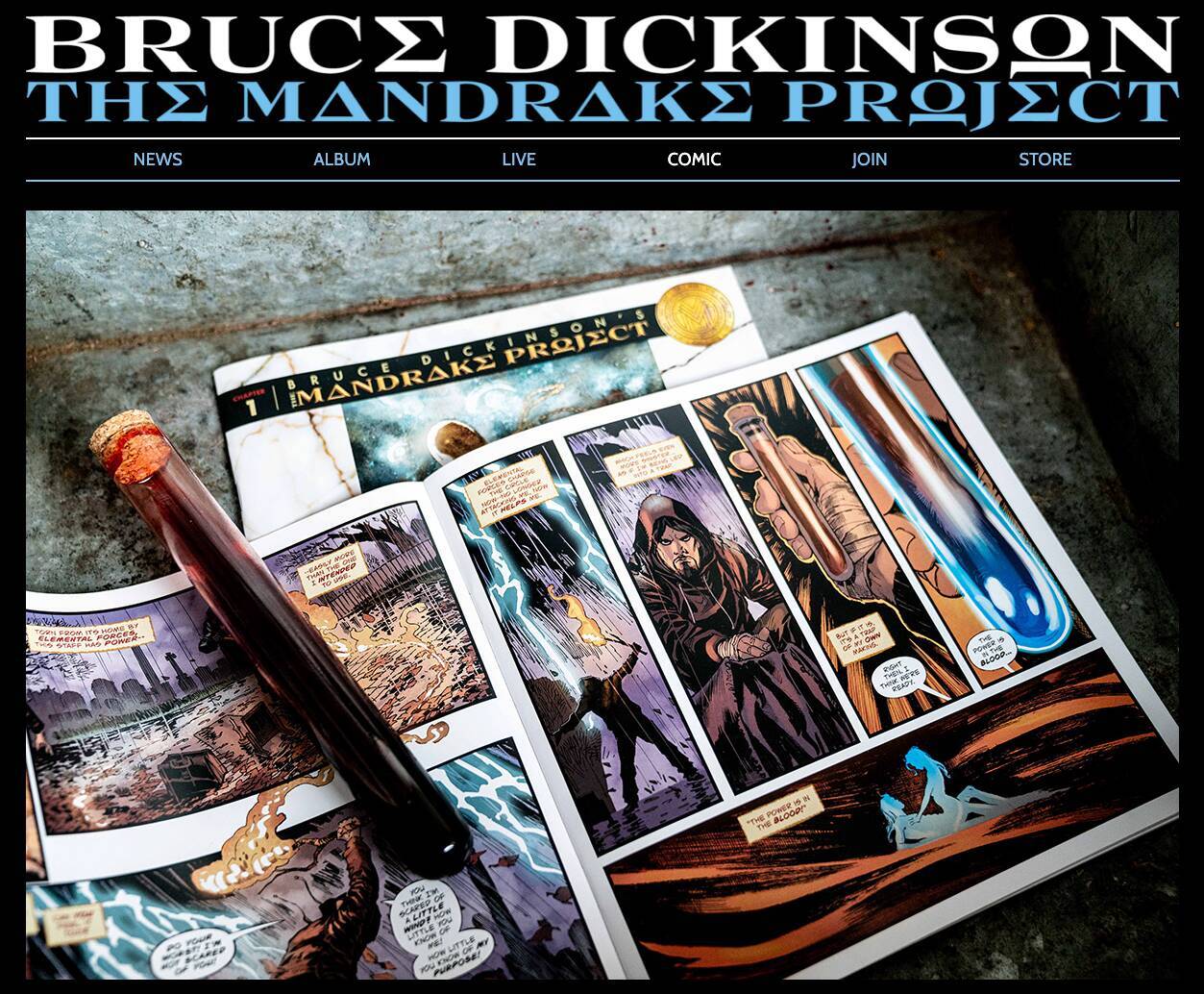 「権力、虐待、アイデンティティをめぐる闘争を描いたダークでアダルトな物語」である『The Mandrake Project』。ブルース・ディッキンソンによって創造されたコミックシリーズでは、Tony Leeが脚本、Staz Johnsonがイラストを担当し、12の四半期のエピソードが3つの年次グラフィックノベルにまとめられる(画像は公式サイトより)