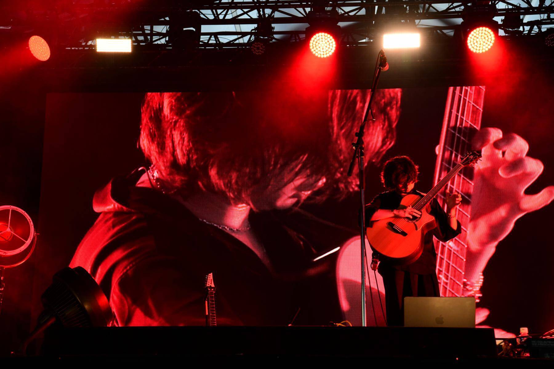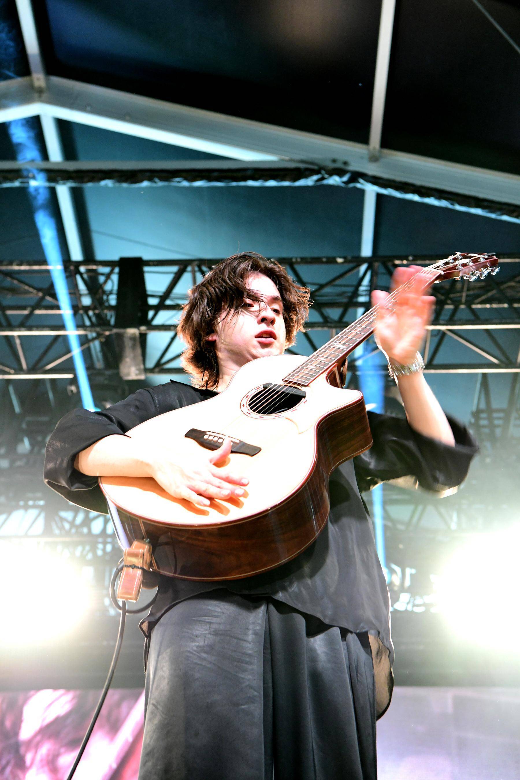 全身を黒に包んだシックな装いで登場したマーシン、ウォーミングアップと言わんばかりに高速のフレージングを披露すると歓声が上がる。同時に、重々しいサブベースとマーシンの叩くアコースティック・ギターのボディの鳴りがRED MARQUEEの天井までヒリヒリ響く。彼が単なる超絶技巧のギタリストではなく、全体のサウンドデザインまで加味した上でアレンジを施す優れたミュージシャンであることは明らかだ。「こんにちはフジロッーク!」という快活な挨拶と共にフラメンコを想起させる高速のアルペジオを繰り出すと観客は完全にノックアウト。後方で涼やかに寛いでいたフジロッカーたちも思わず身を乗り出す勢いだ。