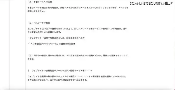 「不正アクセス後 会員制度及びメールマガジンサービス終了「国際平和拠点ひろしま」」の画像5