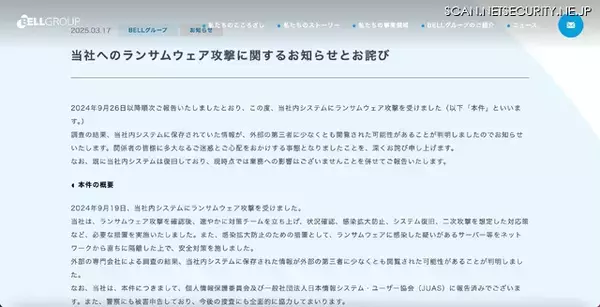 「リークサイトへのアップロードを確認 ~ ベル・データへのランサムウェア攻撃」の画像