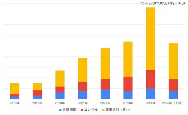 また、2025年上期でのもう一つ顕著な動きとして、コンサルティング業界の中でも監査法人のITリスク・ITガバナンスコンサルタント(アドバイザリー)の市場が拡大していることを挙げ、個人情報保護法やGDPR(EU一般データ保護規則)などのグローバルの法規制への対応が増えてきたことが背景にあるとしている。