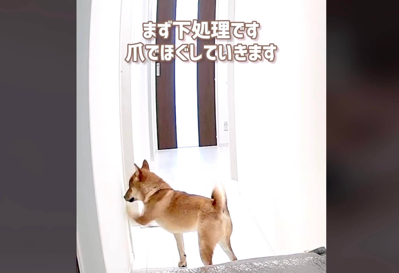 柴犬のこったぬは、お留守番中にやらかしてしまいました。破壊系柴犬たちのイタズラの定番、壁破壊です。