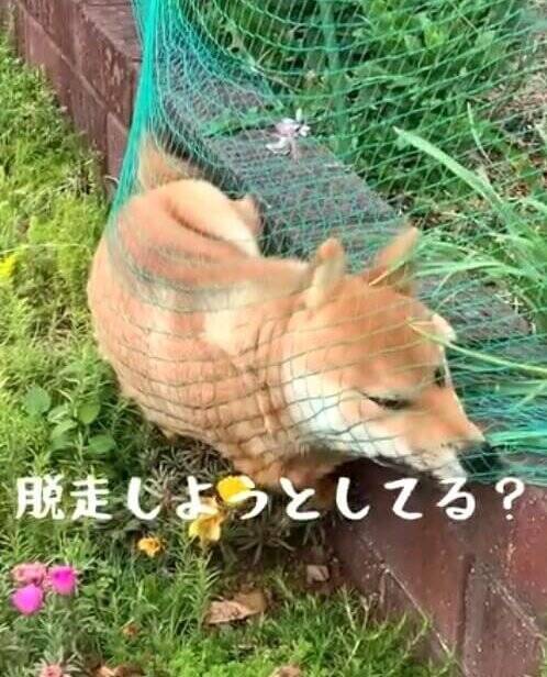 オーナーさんはお庭にいる柴犬のわとの姿を見て、驚きました。
