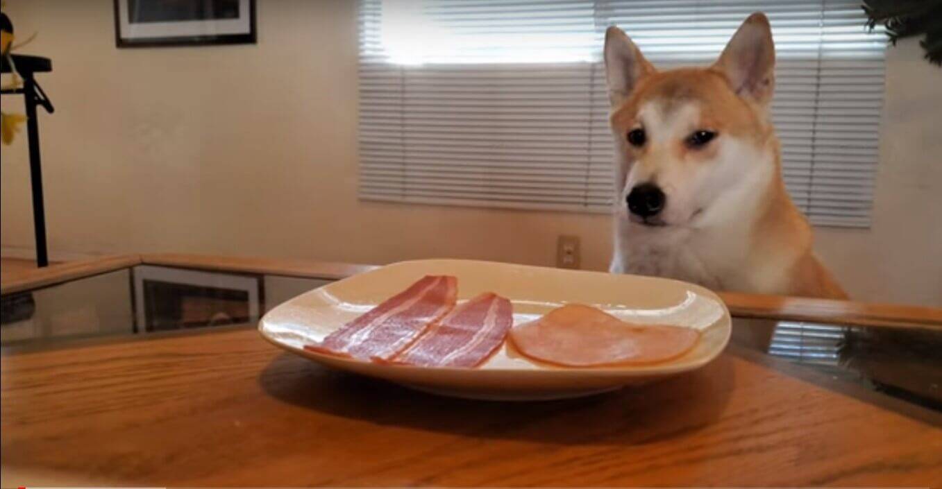 もちろん、食べる気満々だった柴犬は困惑気味…。