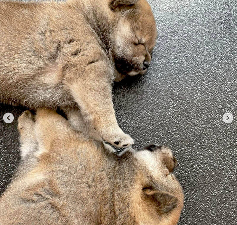 なんとも可愛らしく“鼻チュウ”するように眠っているパピーズ。