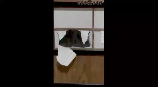 そう、柴犬は自分でやらかしたこの穴をなんと窓代わりにして、部屋の中をチェックするという技を見せたのです。