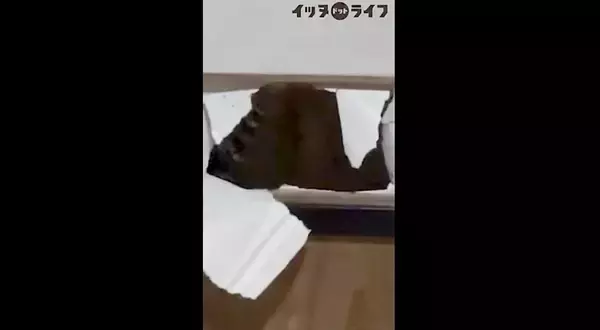 「イタズラであけた障子の穴を窓代わりにして室内チェックする柴犬。怒るどころか“出待ち”しちゃうヤツ。【動画】」の画像