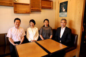 (左から)尾西食品の伊藤秀朗取締役商品開発部長、管理栄養士のこばた氏、フードスタイリストの飯島奈美氏、尾西食品・古澤紳一社長 最優秀賞の「おこげ風カリカリライスの餡かけ」は、尾西のアルファ米「わかめごはん」を油で揚げ、海鮮塩餡かけをかけた一品。サクサクした食感と彩り豊かな見た目と優れた栄養バランスが特徴で、全審査員が絶賛した。優秀賞の「チーズかりかりドライカレー」は、アルファ米「ドライカレー」をフライパンで薄く敷き、チーズを載せて焼き上げたもので、カリカリとした食感が飯島審査員らに好評。子どもから大人まで誰でも手軽に味わえる。