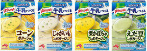 「クノールカップスープ」(味の素) 牛乳でつくるシリーズ「クノール カップスープ」全4品種を3年ぶりに全面リニューアルし、2月19日から全国発売した。コロナ禍による健康栄養意識の高まりを受け、「牛乳の栄養がスープでおいしく摂れる」をコンセプトに品質・パッケージを一新。「牛乳の栄養がスープでおいしく摂れる価値を伝え、健康栄養の課題解決に貢献する」(栄養・加工食品事業部鈴木博之氏)。