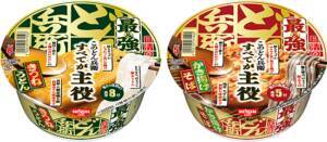 「日清の最強どん兵衛 きつねうどん」「同 かき揚げそば」(日清食品) 「最強」という商品名が示す通り、「きつねうどん」は通常の「どん兵衛」より太く、「もちもち食感」をアップした「極太うどん」と、6種の合わせだしを使用した昆布の後引く旨みが特長のつゆ、通常よりぶ厚く、噛むほどに旨みが染み出す「ふっくらおあげ」(丸大豆100%使用)という組み合わせ。長野県の老舗「八幡屋礒五郎」で特別に調合した「特製ゆず七味唐辛子」を入れると、香り高い上質なゆずの香りが広がる。