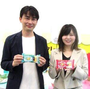 左から杉本隆彦商品本部FF・スイーツ部スイーツグループスイーツ担当、マーケティング本部メディア&プロモーション改革推進部プロモーショングループの大谷萌氏 取材に応じた杉本隆彦商品本部FF・スイーツ部スイーツグループスイーツ担当は「“もちもち”というワードはここ10年くらい上位を占めている食感。クレープ粉の配合ほか、焼き方・焼く時間・焼く温度の全てが合致しないと、絶妙なもちもち感が出せず、その調整に苦労した。実は、もちもちし過ぎてもおいしくなく、メーカーさまのご協力のもと試作とモニタリングを重ねながら編み出していった」と振り返る。