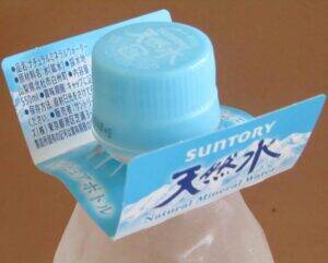 首掛けの折り曲げられた内側部分にJANコードや必要表示内容が畳み込まれている。 同商品は、サントリー初の試みとして開発したラベルレス専用ボトルで「空気まで冷たく澄んだ水源から提供される“清冽なおいしさ”という『サントリー天然水』の価値が瞬時に伝わるように開発した」(サントリー)もの。