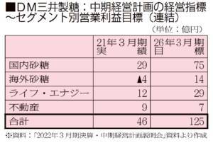 合併を機に調達、生産、物流など効率化を加速。国内砂糖事業の営業利益を21年3月期の29億円から、26年3月期には75億円まで成長させる。国内砂糖で稼いだキャッシュを海外事業やライフ・エナジー事業など成長領域に投入し、グループ事業ポートフォリオを大胆に変革しようとしている。