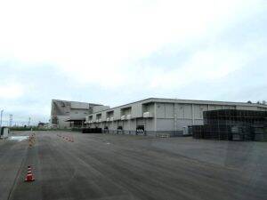 「糠内(ぬかない)加工用馬鈴しょ集出荷貯蔵施設」外観 倉庫内には、じゃがいもをコンテナに入れて貯蔵するコンテナ貯蔵庫が10室ある。1室あたりの貯蔵能力は最大1000トン。10室のうち5室には温暖化対策として冷蔵設備を導入している。