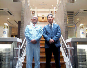 藤原義寿工場長㊧とロイヤルの佐々木貴央社長