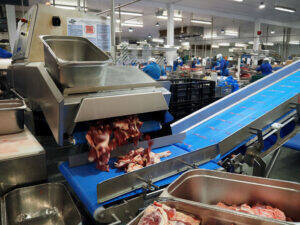全工場に導入している「センサーX」個々の肉に占める脂質の割合を瞬時に測定する「センサーX」を欧州で初めて導入した。これにより、用途ごとに最適な脂質量の肉を提供できる。またハンバーガー向けの肉を仕分ける際に、以前はプラスチック製の容器やプラ製天板の作業台を使用していた。だがプラ片混入のリスクを日本企業から指摘され、現在ではステンレス製に変更。顧客ニーズへのフレキシブルな対応も強みだ。