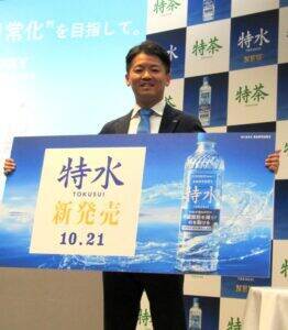 「『特茶TOKUCHA』を見た時点で手を出さない若い方に向けて、まずは水カテゴリからアプローチして『特茶TOKUCHA』に入ってもらうことを期待している」との考えを明らかにする。