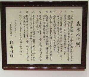 「森永人十則」 “若さと強さ”をスローガンに掲げるとともに、創業者の事業に対する理念を堅持する“森永人”としての行動指針を「森永人十則」にまとめ全社員の理解と実行を促した。
