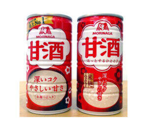 リニューアルした「森永甘酒」㊨ 左は従来品 コミュニケーションではパッケージリニューアルとホット飲用を訴求する新しいWEB動画を9月1日に公開した。そのほかターゲット層の利用が多い雑誌やラジオでの広告、動画配信サイトやSNS等でのWEB広告を展開している。