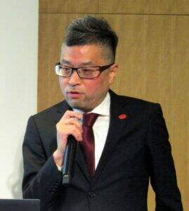 コカ・コーラボトラーズジャパンの福永祐司SCM本部リサイクルトランスフォーメーション部部長 25年11月25日、メディア向け説明会に登壇したCCBJIの福永祐司SCM本部リサイクルトランスフォーメーション部部長は「我々の工場で排出量の多い茶殻と抽出後のコーヒー粉を資源循環すべく取り組んでいるが、なかなかリサイクル素材としての価値を生みづらい。加えて、(資源循環の際に)CO2発生も抑制しなければいけない。ライノフラックス社さまの技術はこれらの課題を一緒に解決してくれるモデル」と期待を寄せる。