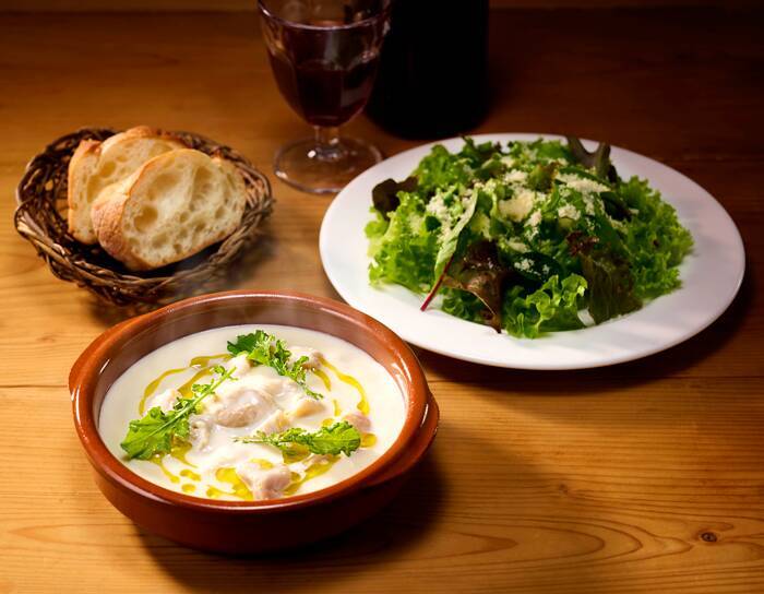 「若鶏のガーリッククリーム煮込み(シュクメルリ)」と「若鶏の猟師風トマト煮込み(カチャトーラ)」は、簡単オペレーションで提供可能。「クラフトベーカーズ」シリーズの「石窯バゲット」とも相性抜群のおいしさ。