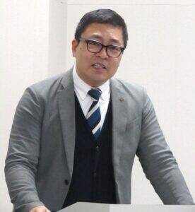 湖池屋らしさについて力説する小幡氏 16日、湖池屋本社(東京都板橋区)に開設したメディア向け臨時投票所で冒頭挨拶した小幡和哉マーケティング本部広報部部長は「人間らしさ、人間くささ、人間味のある会社が我々の特徴であり大事にしてきたこと。単なるデジタル施策ではなく、変わらない湖池屋スピリッツが底流に流れている」と力を込める。