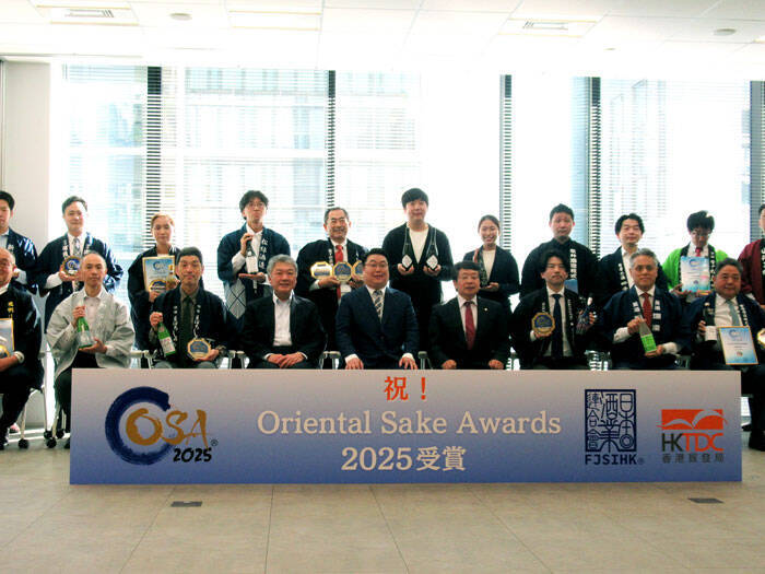 OSAの主催は香港日本酒業連合会(ミッキー・チャン会長)。日本を除くアジアでは最大規模の日本酒コンペティションで、昨年は531点がエントリー。最優秀賞の「Sake of the Year」は新澤醸造店(宮城)の本醸造酒「あたごのまつ 鮮烈辛口」が選ばれた。