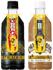 マーケティング刷新に伴い、「クラフトボス」コーヒーシリーズの「ブラック」と「ラテ」は“注ぎたてクリアな味わい”を目指して中味に磨きをかけ、コーヒーシリーズ全体では新ラベルを採用した。
