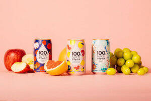 缶のデザインもおしゃれ「100%カジューハイ」(富永貿易)ピンクグレープフルーツ、白ぶどう、りんごの3品種。濃縮果汁を水とアルコールで還元することで「果汁100%」を実現した。果実本来の豊かなめぐみと、度数3%のほどよいアルコール感が楽しめる。340㎖、オープン価格。