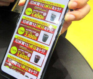 「ファミペイ」で販売している回数券ファミリーマート公式アプリ「ファミペイ」では10杯分の価格で11杯のコーヒーを購入できる回数券を販売している。