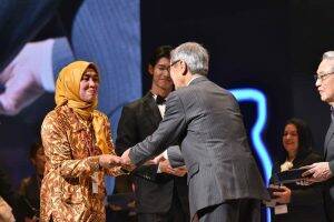 代田賞(海外)表彰式の様子(ヤクルト世界大会)開会は高校生のマーチングバンドによるエネルギッシュな演奏で始まり、半世紀以上活躍した販売員の功績を立てる「永年功労特別表彰」(代表受賞者22名)、販売実績や事業発展に貢献し最も名誉ある「代田賞」(国内7名、海外13名)、同様に成績優秀であり日頃の活動において模範となる人に贈られる「本社社長賞表彰」(7名)で成田社長自ら表彰状を授与したほか、計6つの表彰式で83名を表彰した。