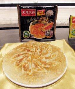 手間なく円盤形に焼ける「羽根つき円盤餃子 PREMIUM」は利便性とおいしさを両立。定番品の「油・水・フタいらず」に加え、並べる手間なく円盤形に焼けるようにした。また外食店「大阪王将」と同様に1粒を大きく、皮の厚みをアップさせた。