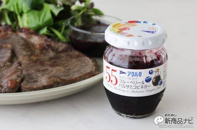 『アヲハタ 55 ブルーベリー&バルサミコビネガー』(150g・希望小売価格 税抜238円)は、甘酸っぱさが特徴のブルーベリーに、バルサミコビネガーを加えた、酸味と芳醇な香りが特徴のジャム。バルサミコビネガーにより、牛肉との相性が良く、塩・こしょうと合わせて牛肉料理の味付けに使うのがおすすめ。