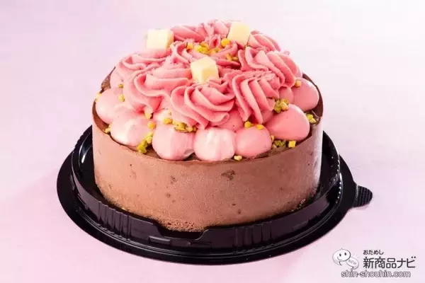 ぽってりと丸みを帯びたクリームは、軽い口あたりのピンクホイップクリーム。口に入れた瞬間、ふわっととろけてまるで本物のケーキのようなリッチな味わいを演出する。