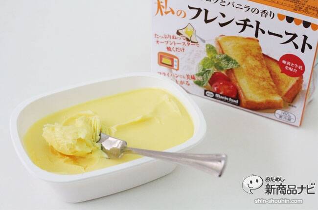 見た目はただのマーガリン。それをパンに塗って焼くだけで、おいしいフレンチトーストの完成! そんな楽しいスプレッドが、マリンフード株式会社から発売された『私のフレンチトースト』である。