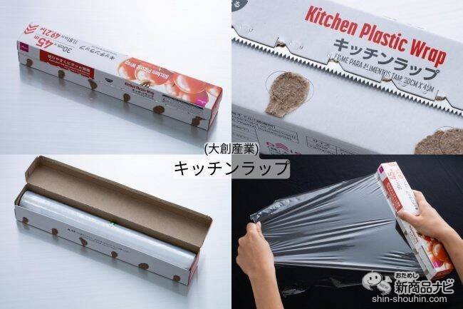 キッチニスタ(茨城県)『キッチニスタラップ』(幅30cm×長さ20m・参考価格 税込110円・発売中)は、ほどよい密着力と伸縮性があり、カットしやすいのが特徴だ。「キッチニスタ」ブランドのこちらのラップは、多くのプロの料理人から支持されている商品だという。実際に使用してみると、使用感、幅・長さなどの観点から総合的に考え一番コスパが良い商品だと感じた。箱自体に巻き戻り防止の工夫が無くても、塩化ビニル樹脂素材のラップは密着力があるため、カットした後のラップが箱にしっかりついているので、巻戻りしにくいと感じた。コスパの良い商品を探している方におすすめ。