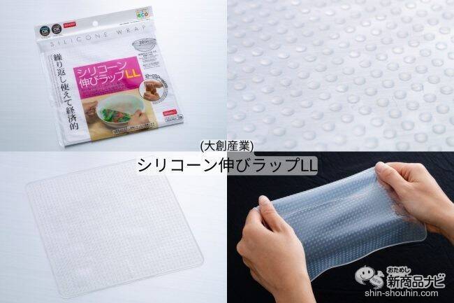 大創産業(広島県)『シリコーン伸びラップLL』(約20cm×20cm・参考価格 税込110円・発売中)は、繰り返し使用できるタイプのラップだ。食品などを直接包むことはNGで、また、使用できる皿などの大きさが決まっているので使用方法は限られてくるが、使い捨てではないので、エコな商品を探している方におすすめ。今回、初めてこちらのタイプのラップを使用したが、皿にうまく密着させるにはコツがあり、最初は少し使い方に戸惑った。他のラップに比べると密着力がやや落ちると感じたので、長期保存などにはあまり向かないと思うが、例えば、早めの時間に作った夕飯を食べる時間まで蓋をしておきたいときなどに使用するのが向いていると思った。