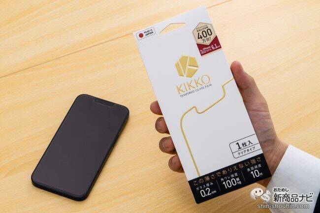 その第1弾商品となるのが、今回紹介する『KIKKO 強化ガラスフィルム クリアタイプ ガラス厚み0.2mm』(iPhoneシリーズ対応・厚さ0.2mm・表面硬度10H・希望小売価格 税込2,980円・発売中)である。